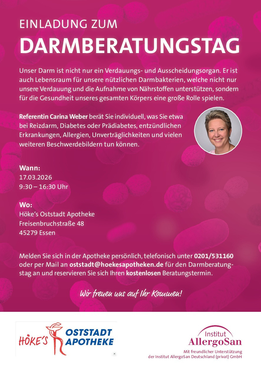 Zurück Omnibiotic Beratungstag am 17. März 2026 25. Februar 2026 🌸 Sichern Sie sich Ihren kostenlosen Beratungstermin in unserer Apotheke in Essen Freisenbruch 🌸
